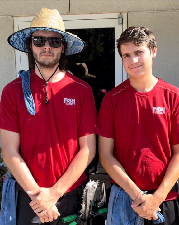 - Wear red Fish Window Cleaning uniforms for easy identification