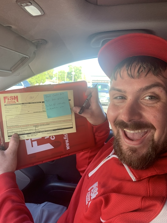 - Wear red Fish Window Cleaning uniforms for easy identification