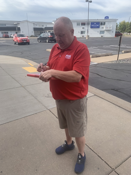 - Wear red Fish Window Cleaning uniforms for easy identification
