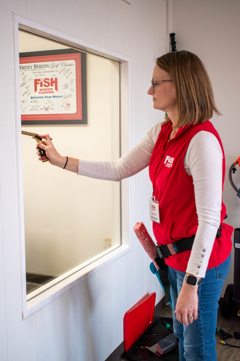 - Wear red Fish Window Cleaning uniforms for easy identification