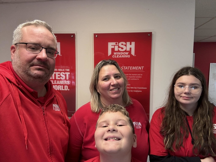 - Wear red Fish Window Cleaning uniforms for easy identification