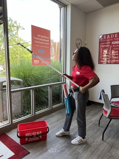 - Wear red Fish Window Cleaning uniforms for easy identification