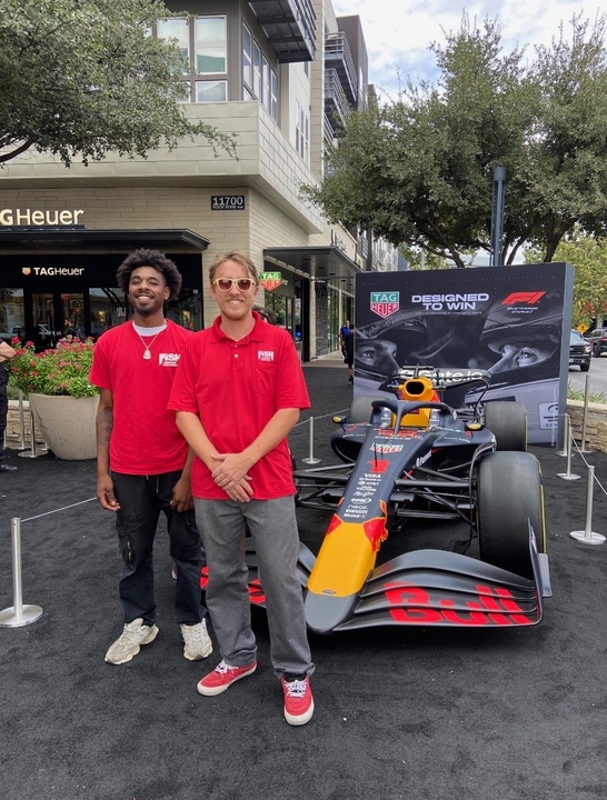 - Wear red Fish Window Cleaning uniforms for easy identification