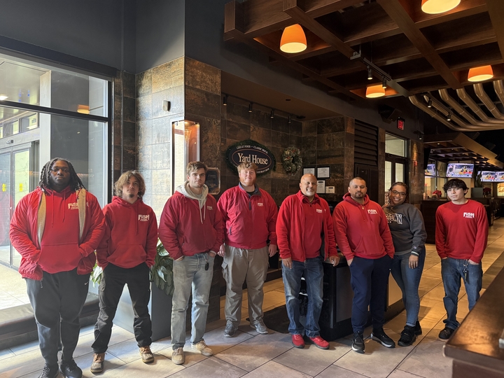 - Wear red Fish Window Cleaning uniforms for easy identification
