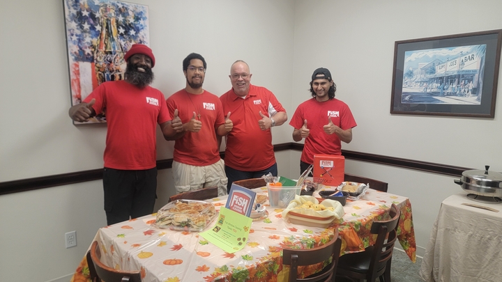 owner lori allen standing with some people that make up the fish team