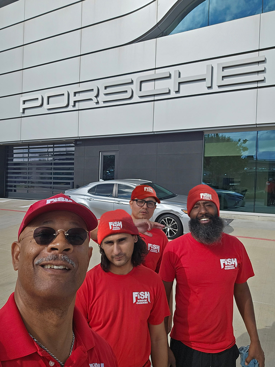 - Wear red Fish Window Cleaning uniforms for easy identification