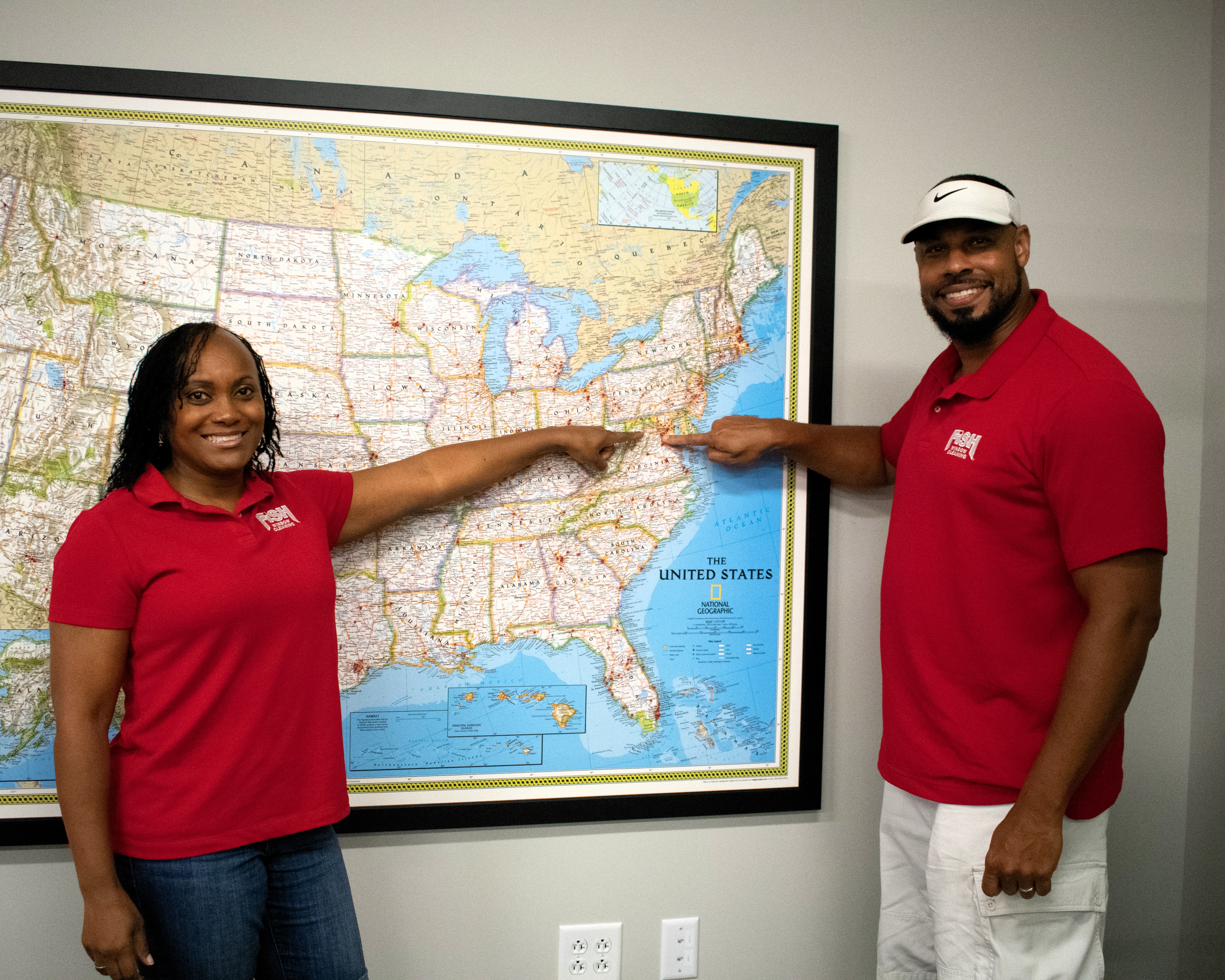 - Wear red Fish Window Cleaning uniforms for easy identification