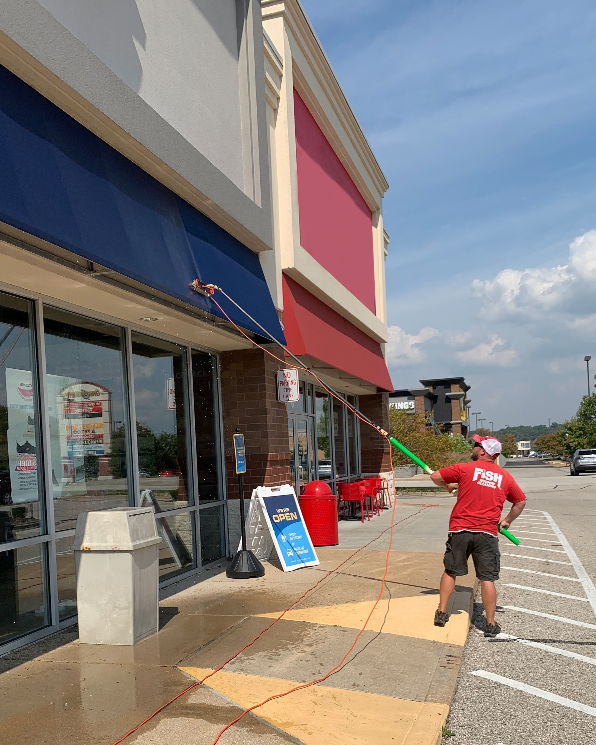 Awnings provide many benefits to a home from giving shade to enhancing the look of a property. As they are usually positioned above doors and windows, Fish Window Cleaning® often performs awning cleaning as part of our window cleaning services. For homeowners and businesses, it often just makes sense since we’re addressing the windows anyway.